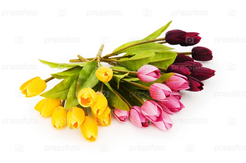 Красочные тюльпаны, изолированные на белом фоне