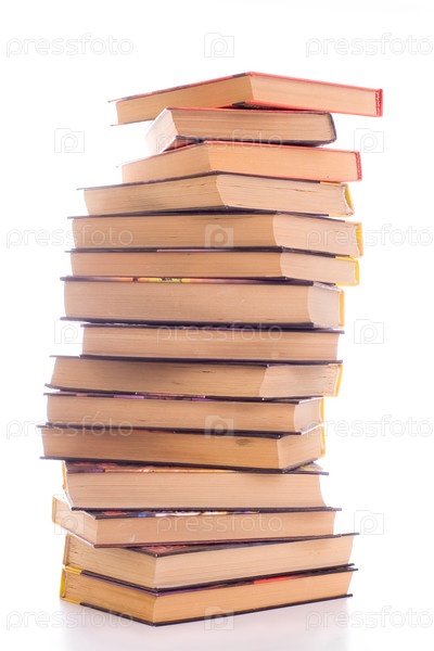 Стопка старых книг на белом фоне