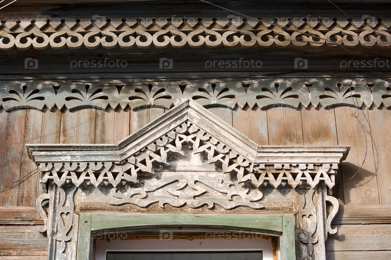 Наличник на окне на деревянном доме в Астрахани