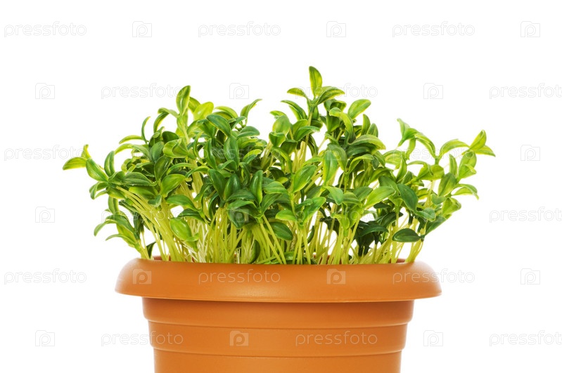 Свежая рассада в глиняном горшке