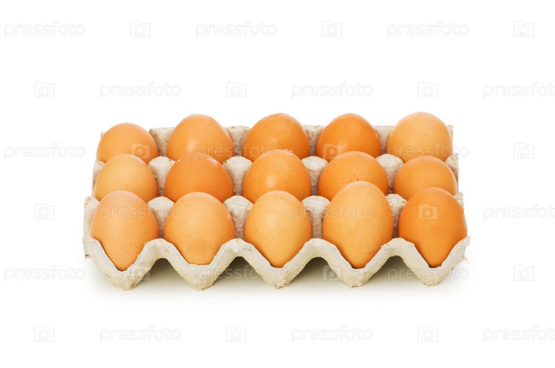 Яйца в коробке, изолированные на белом