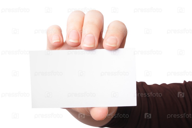 Пустая визитка в руке (крупный план)