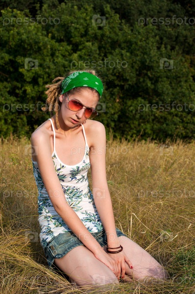Девушка сидит на траве