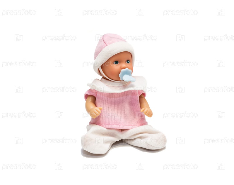 Пупс в розовой одежде, изолированный на белом фоне