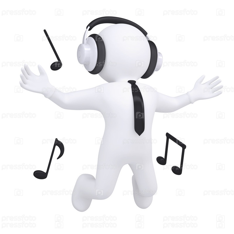 3D человек с наушниками в прыжке