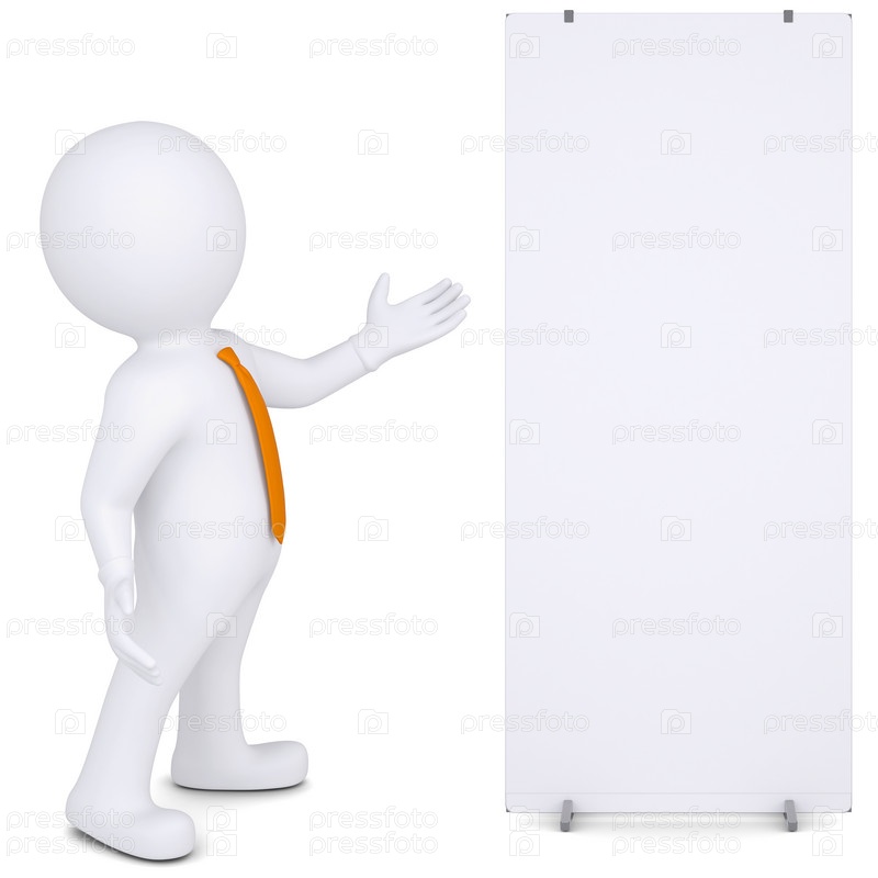 3D человек показывает на белом плакате