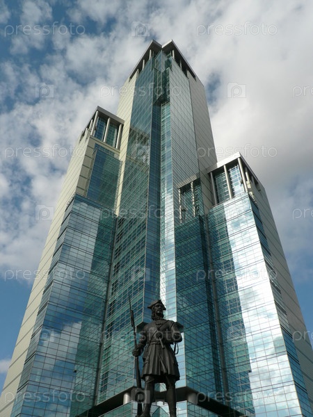 Памятник на фоне высотного здания