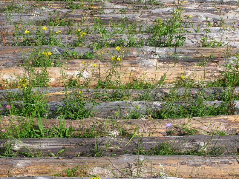 Трава, проросшая сквозь бревна