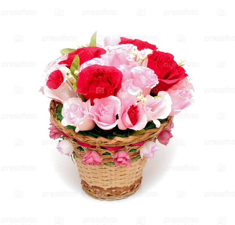 Бумажные цветы в корзине