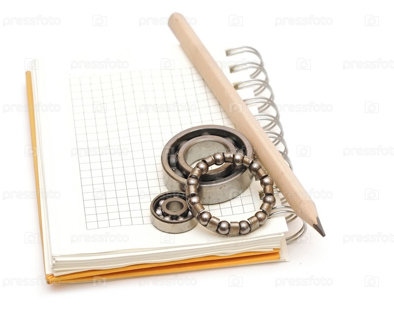 Подшипники на пустом блокноте. Пространство для вашего текста