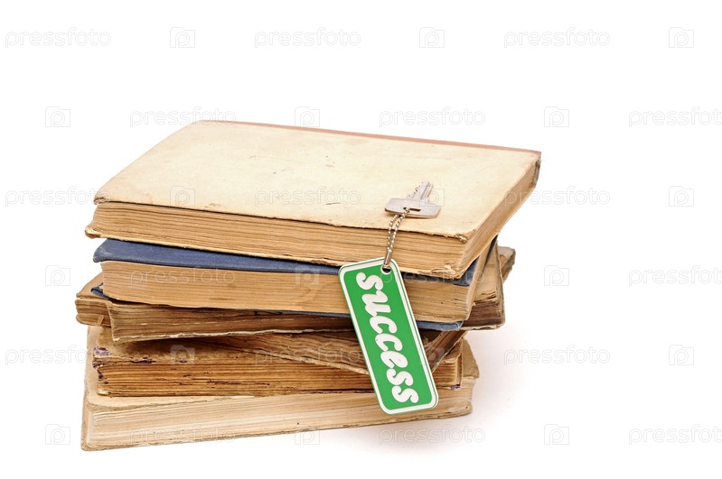Стопка книг с ключом к успеху