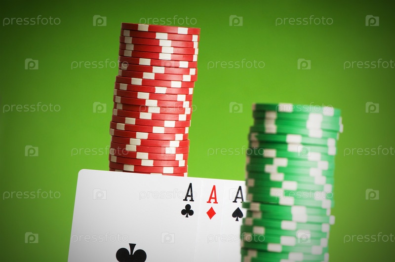 Фишки казино и карты на зеленом фоне