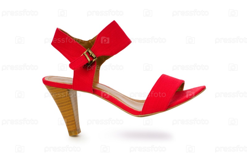 Красная туфля на каблуке на белом фоне