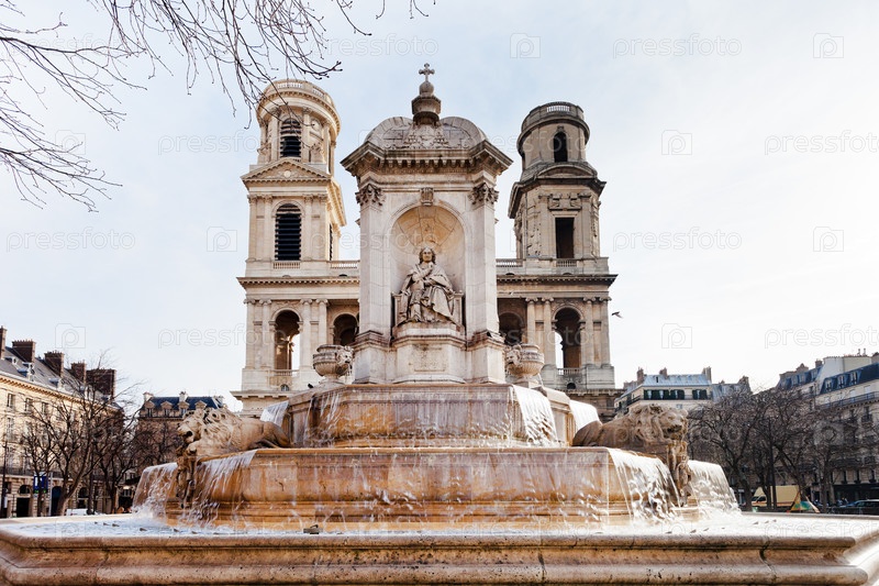 Фонтан Сен-Сюльпис и церковь в Париже