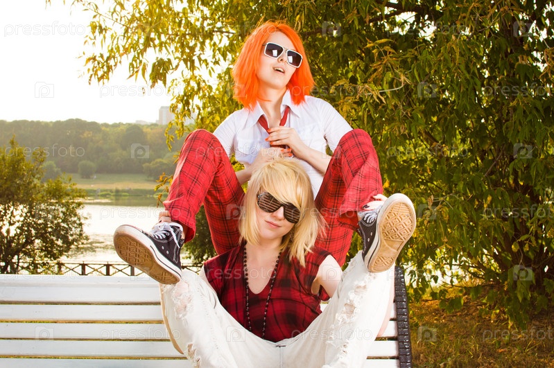Две девушки-подростки веселятся в парке