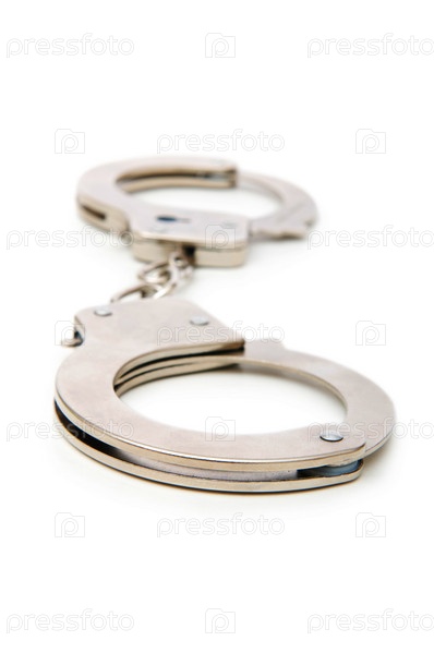 Металлические наручники на белом фоне