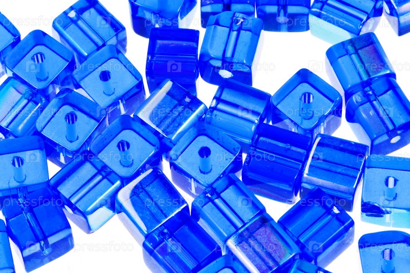 Голубые стеклянный кубические бусины крупным планом