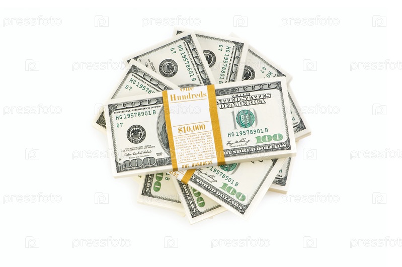 Куча долларов изолирована на белом