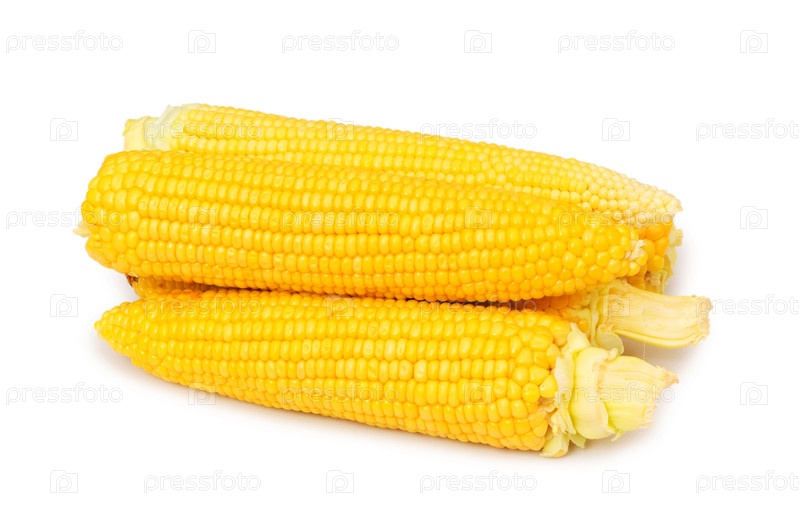 Кукурузные початки на белом фоне