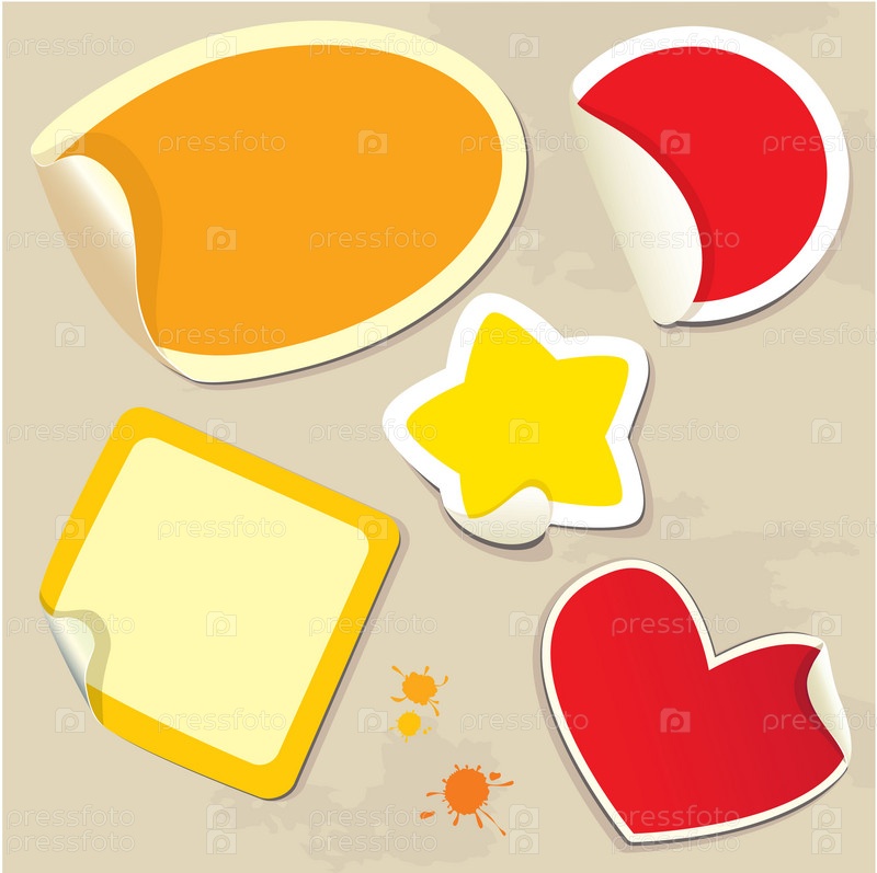 Набор наклеек разных цветов с загнутыми углами - овал, круг, квадрат, звезда и сердце