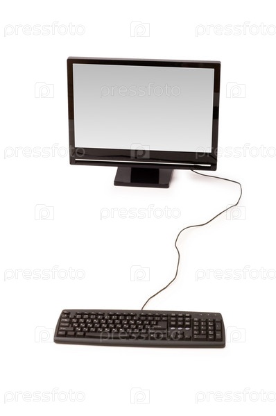 Монитор с клавиатурой на белом фоне