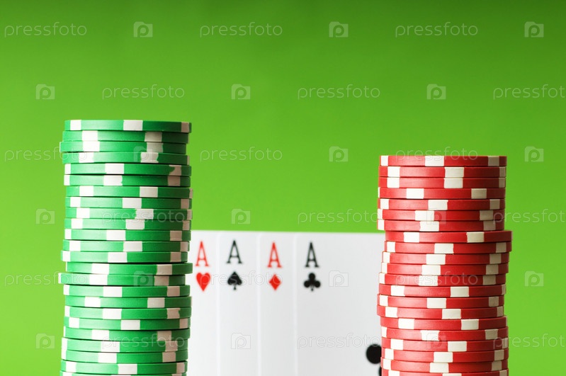 Чипы казино и четыре туза на зеленом фоне