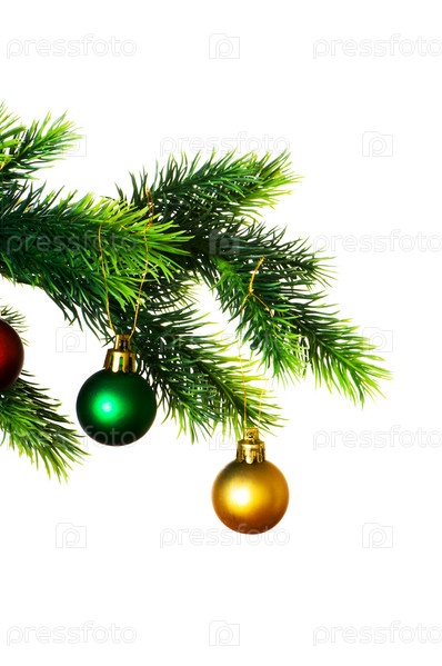 Ветка с игрушками на белом фоне