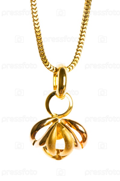 Золотой кулон на цепочке на белом фоне