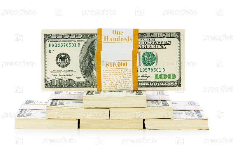 Пачки долларов на белом фоне