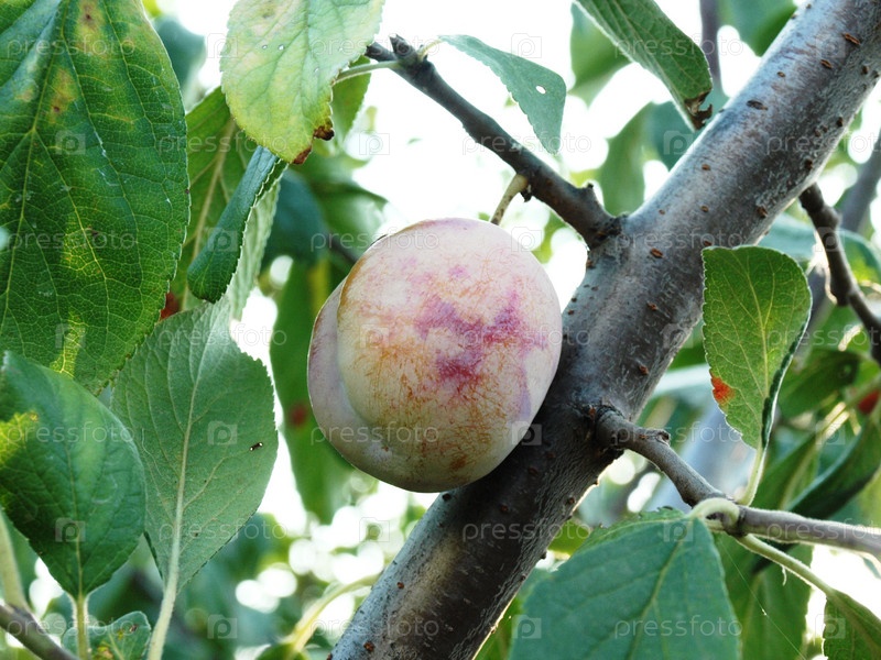 Ветка дерева сливы с плодом