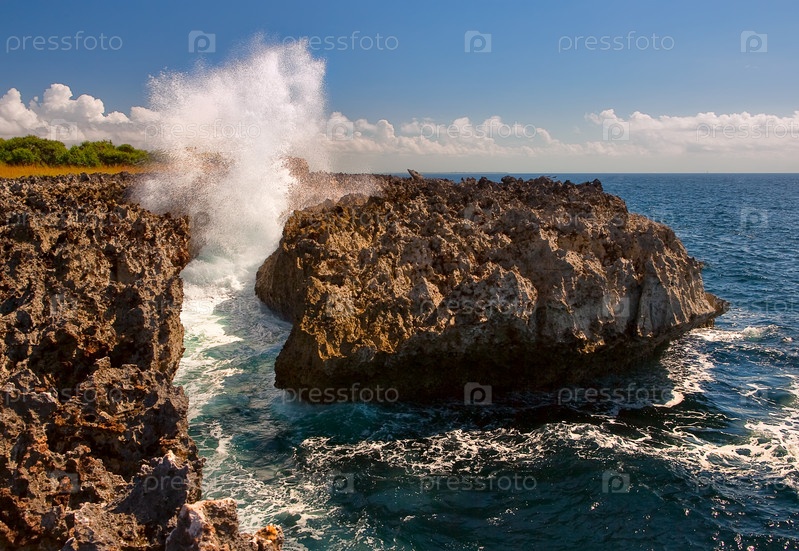 Волны бьются о скалы