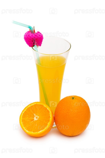 Свежевыжатый апельсиновый сок на белом фоне