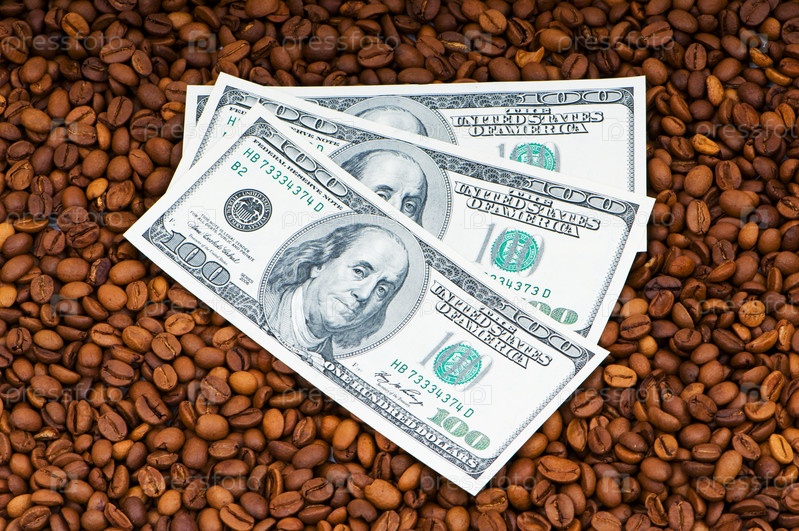 Доллары на фоне кофейных зерен