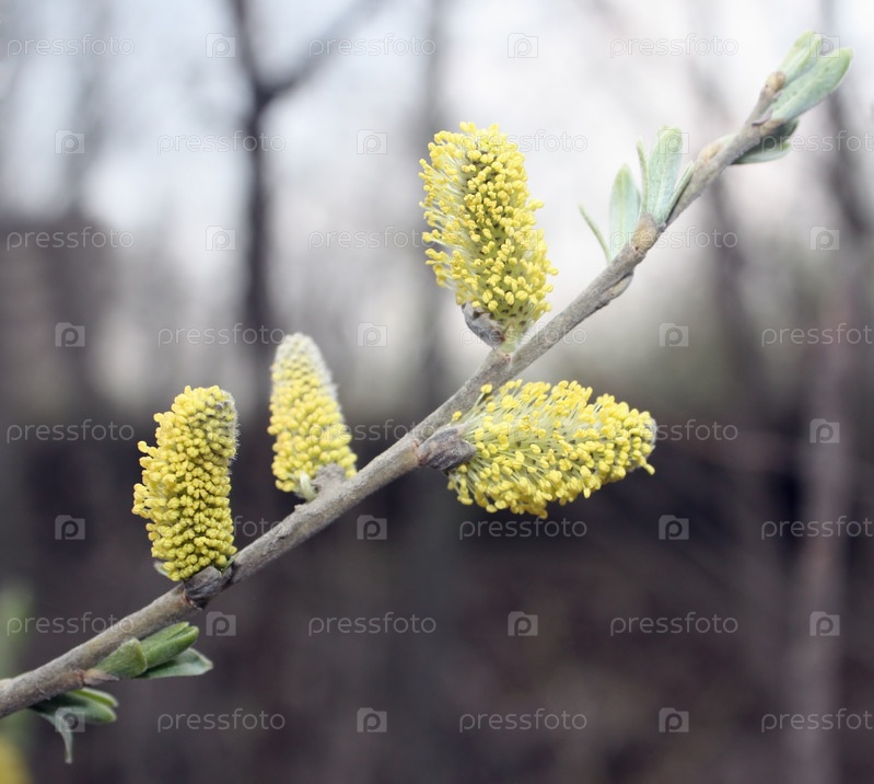 Ветка ивы с желтыми пушистыми цветами