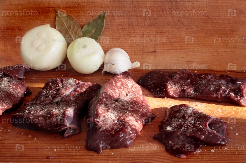 Говяжья печень, лук и лавровый лист