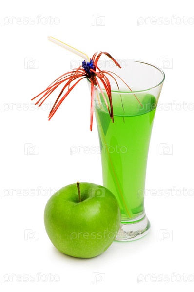 Яблочный коктейль на белом фоне