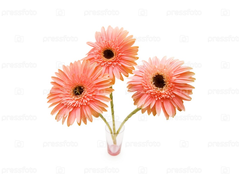 Розовые герберы в вазе на белом фоне