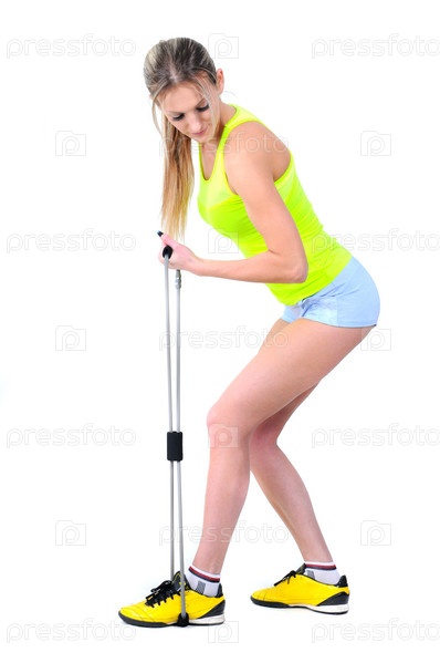 Красивая здоровая женщина занимается фитнесом