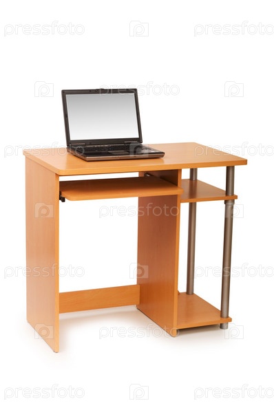 Ноутбук на столе на белом фоне
