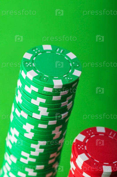 Стопки фишек на зеленом фоне