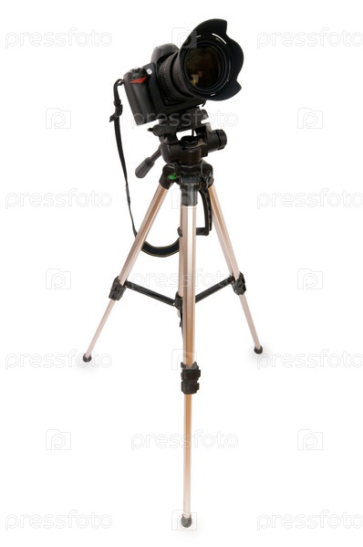 Профессиональная камера на штативе на белом фоне