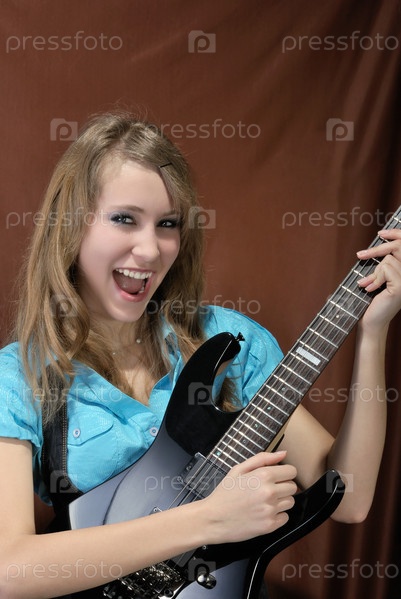Портрет привлекательной девушки с гитарой