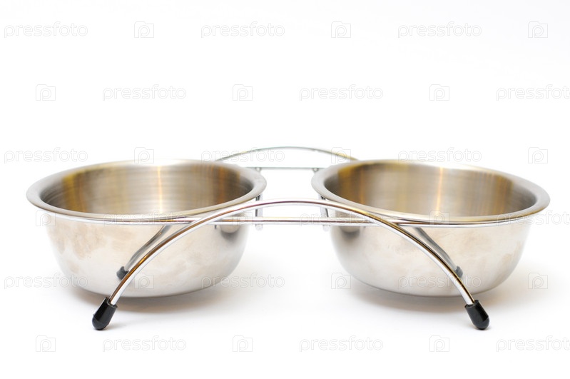 Тарелка для кормления животных на белом фоне
