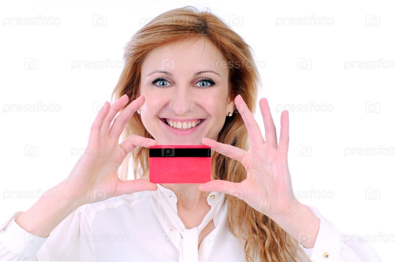 Женщина, держащая кредитные карты в руке