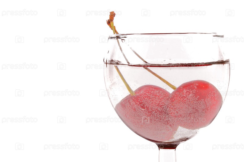 Вишня в бокале,изолированная на белом фоне
