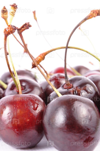 Спелая вишня на белом фоне