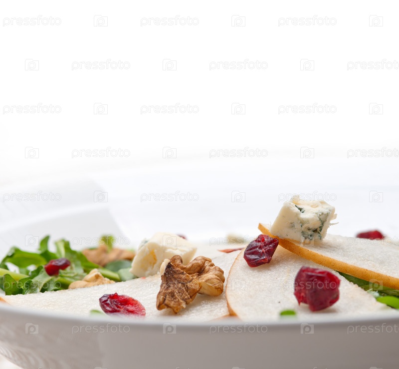 Свежий салат из груши, рукколы и сыра горгонзола