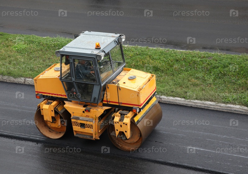 Асфальтоукладывающий каток на дороге