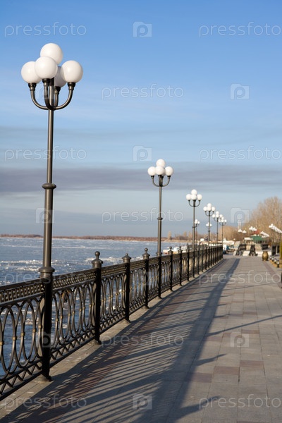 Набережная с фонарями в перспективе