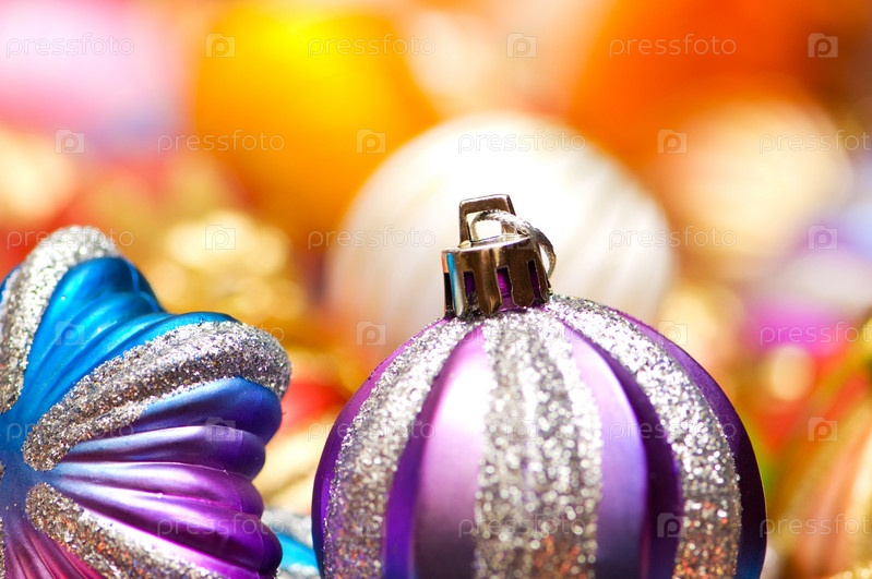 Красочные рождественские украшения на блестящем фоне